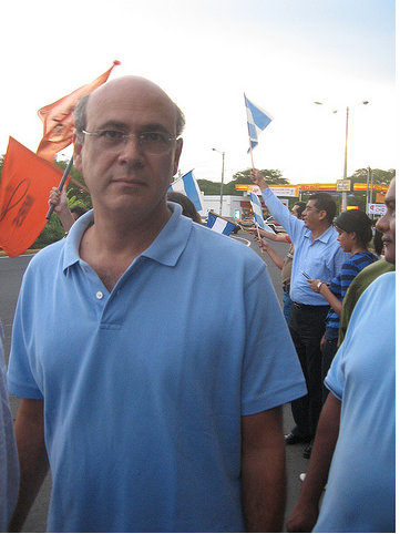 Tinoco is a tall, thin man with curly, closely cropped hair, sharply angular features and glasses. He was dressed in jeans with a blue-checkered casual button-down shirt and a light blue jacket. He’d had a press conference first and told the press that he was late because he’d been in a meeting with representatives from one of the conservative parties, and that the two groups were working together against the “absolute and hypocritical tendencies of Daniel Ortega.”