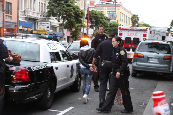 Moments later police stopped the get-away bus and arrested the four suspects in front of Western Donut Chinese Food on Mission Street.