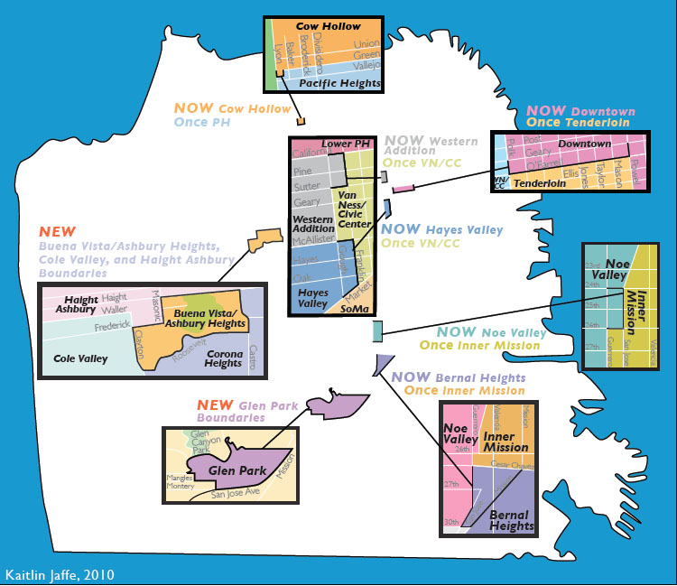 The need to change the boundaries and names of areas or sub names makes me crazy. Having grown up my whole life the existing names always did just fine. People need to just get over it. If you live in the TL it doesn’t change the fact some homeless tranny is shuffling past your door whether you call it TL, Downtown or Lower Pac Heights…it’s still a not so pretty sight first thing in the morning.