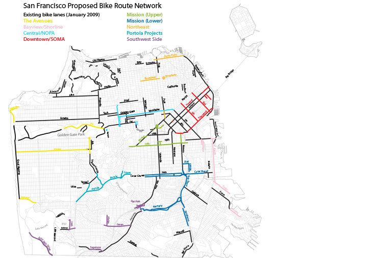 Now that the injunction has been lifted, it’s good to be reminded how extensive the bike lanes will soon be. The San Francisco Bicycle Coalition’s website will help you imagine the network.
