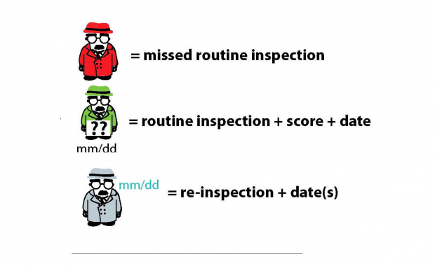 Sin embargo, las reinspecciones no son las inspecciones rigurosas de rutina que pide el protocolo. A menudo suceden algunos días después de la inspección de rutina, y el personal sabe que el inspector regresará a revisar las violaciones iniciales.