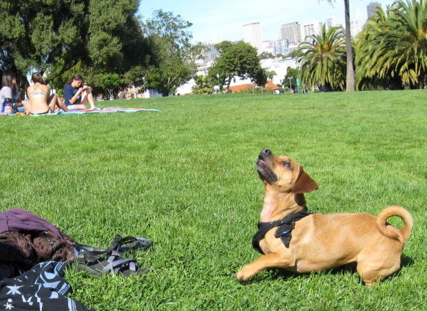 Docenas de perros corrían sin cadena toda la tarde en el Parque Dolores, sin aparentemente haberse dado cuenta de las acrobacias en el cielo.