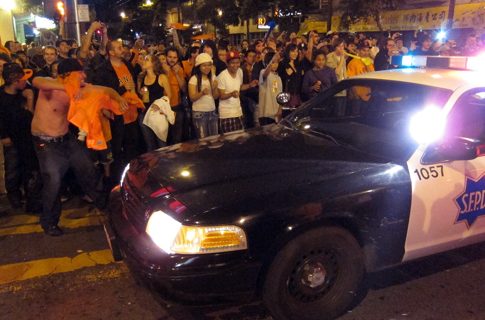 As ecstatic fans took over the streets after the Giants’ victory, law enforcement officers have been struggling to maintain order throughout San Francisco.