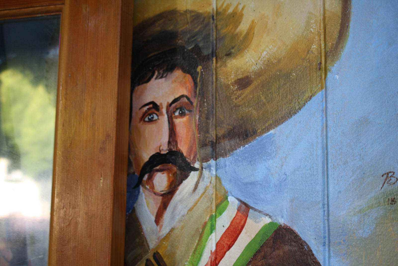 At Taqueria Vallarta on 24th and Balmy. When the door is open, it looks like the gentleman in the mural is hiding behind it.