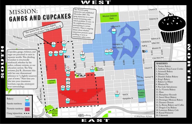 El homicidio del fin de semana cerca de las calles 17 y Misión y el tiroteo del miércoles al medio día en las calles 24 y Harrison fueron un recordatorio para los residentes del Distrito de la Misión, un barrio de moda en donde se festeja de todo: desde la receta de donas a pastelillos y chicharrones artesanales. El barrio es también un lugar en donde todavía existe la violencia de pandillas; en 2007 se estableció un acuerdo entre pandillas el cual todavía existe.