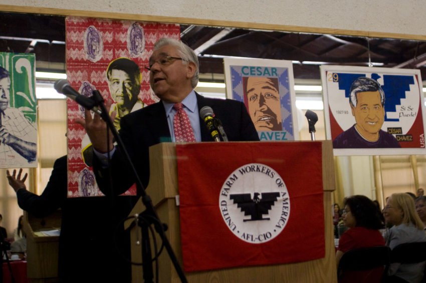 Keynote Speaker Art Torres remembered working and traveling with Chávez in the 1970s. Security for their road trip, he recalled, was provided by two German shepherd dogs named Boycott and Huelga, made unhappy by Chávez’s attempt to turn them vegetarian.