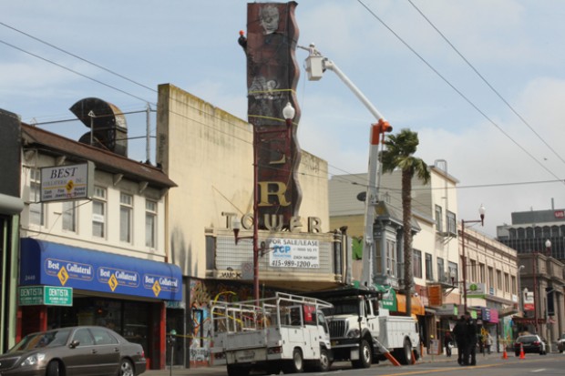 El sábado pasado, la policía cerró la calle Misión entre las calles 10 y 21 por temor a que el viento tirara el letrero metálico del Teatro Tower y lastimara a alguien.