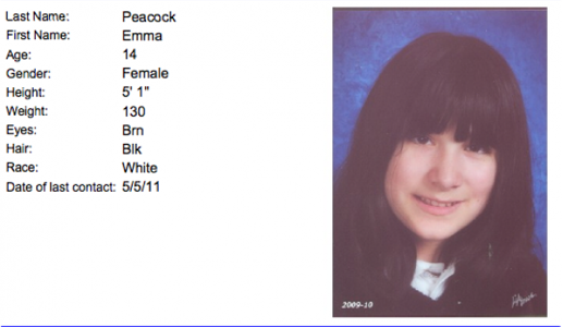 The parents of 14-year-old Emma Peacock woke up Friday at 6 a.m. and discovered that their daughter was missing from their Noe Valley home, police reported.
