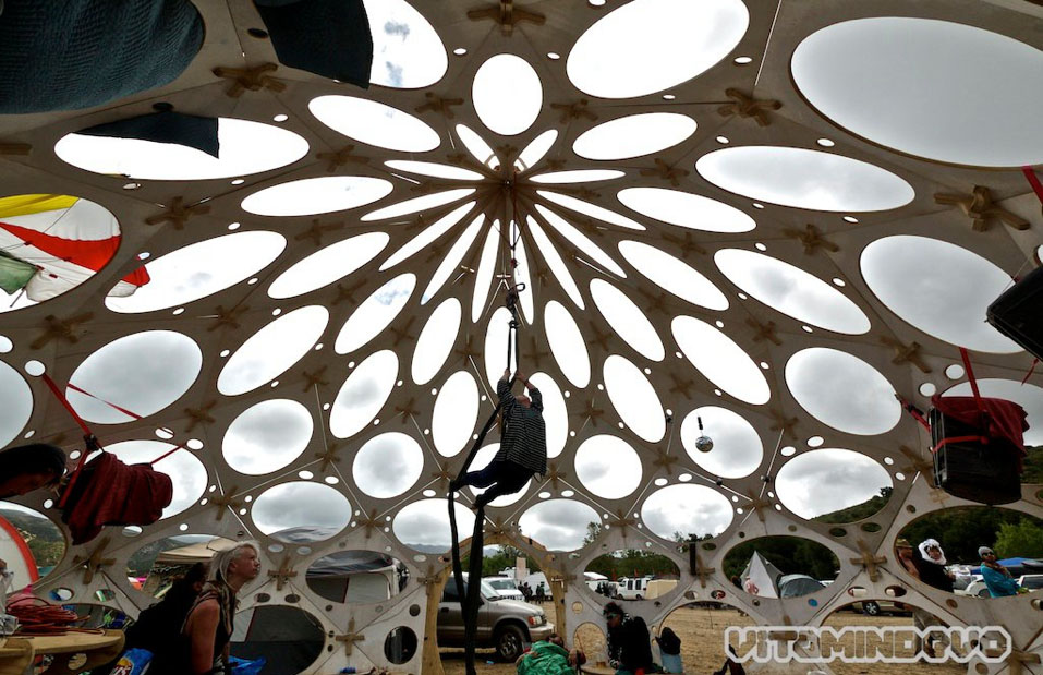 Did you catch it? We set-up the Zome in Dolores Park this morning. We were told by the permits department that no permit was needed when we called yesterday but not long after we built this, a Parks and Rec ranger told us it needed to be removed and that we would be fined $500 for setting a structure up without a permit…. Se la vi…. Apparently art is not that welcome in Dolores Park ? The designers of this piece are Rob Bell and his girflriend Patricia Algara. Patricia is also the landscape architect for the edible garden that is being built in Mission High School next door. Some of the students came by and said hi as well!