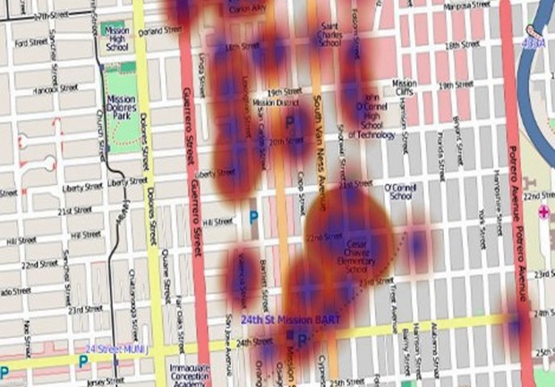 El informe de Blockboard concluye esto: un mapa térmico (creado con OpenHeatMap) el cual muestra en dónde se han reportado la mayor parte de los problemas en la Misión.