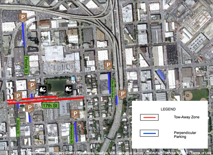 On weekdays, parking near 17th Street east of Folsom is already fierce. There’s not much of it to begin with, and in February Muni’s free employee parking lot switched to paid parking. Nowadays, Muni drivers have joined the competition among local businesses and people living in their cars.