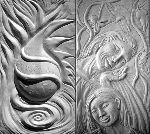 “They portray the five elements: air, water, fire, earth and the soul, with images of elder men and women speaking to young men and women. The human images emerge from the earth motif,” Alicia wrote in an e-mail to Mission Loc@l.
