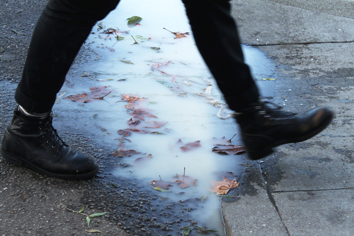 He knows not to ruin his fancy black leather Dr. Martens with this puddle of yuck.