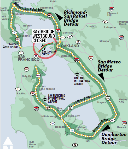 — If you’re on wheels, you can take the Richmond-San Rafael, San Mateo-Hayward or Dumbarton bridges.