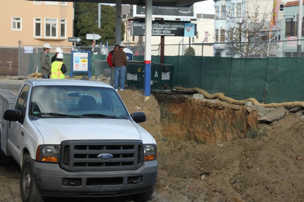 La labor de excavación y descontaminación en lo que solía ser una gasolinera en la esquina de la calle 16 y la avenida South Van Ness, en donde una inmobiliaria quiere construir condominios, fue detenida el viernes por la noche después de que el Departamento de Salubridad determinó que el olor a gas se podía oler en los alrededores.