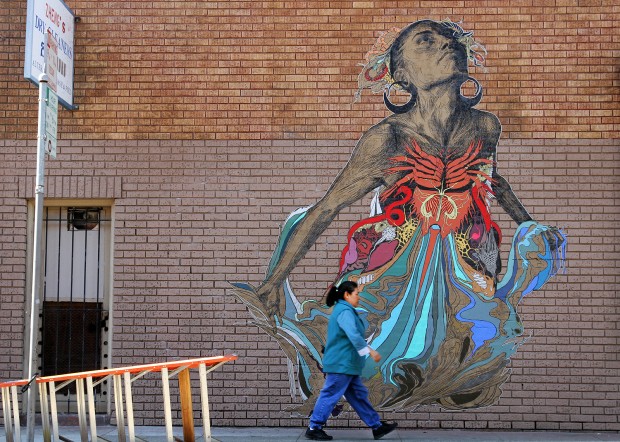 Treinta minutos después, otro dúo se detiene sólo que esta vez son viajeros de Europa. Les gusta; también hicieron uso del adjetivo hermoso, y dijeron que “es la tradición del área”. De nuevo, escucharon hablar de la pieza por la propietaria de Precita Eyes.