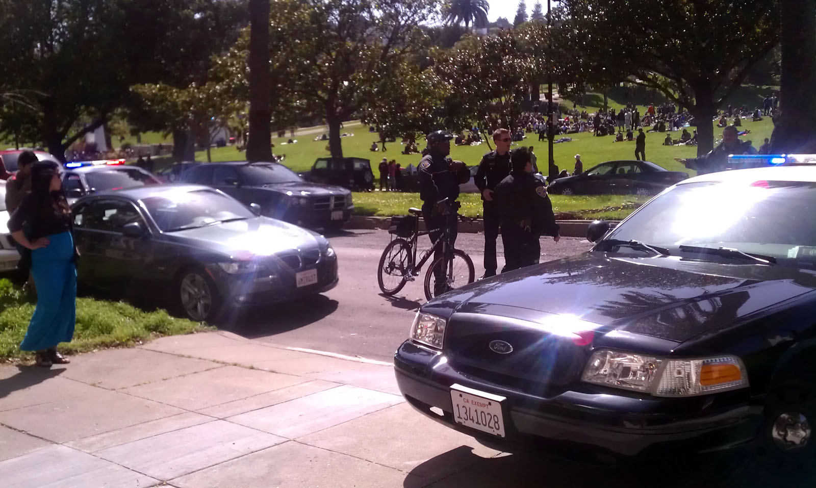 Marianna Belmares said she was taking a nap today in Dolores Park when she awoke just after 3 p.m. to see her friend being tackled by police near the tennis courts. Within minutes, three police cars showed up and her 18-year-old friend, Dante, was detained.