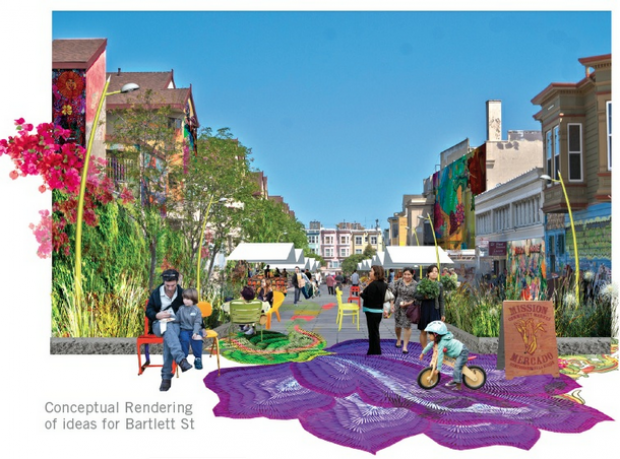 El Mercado Comunitario de la Misión, el cual comenzó en 2010, ha ayudado a cambiar eso —por lo menos, así sucede cada jueves por la tarde cuando se cierra la calle y hay puestos de comida fresca, música en vivo y comerciantes locales que llenan la calle. No obstante, los entre 20-25 residentes que llegaron a la primera reunión pública para hablar del proyecto el miércoles pasado estaban entusiasmados por que haya más.