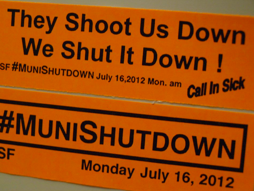 Several groups have called for a “Muni shutdown” on Monday and have asked protesters to gather at various locations. One of the meetings will take place at 6 a.m. at 14th and Market streets, according to a public Facebook page created by one of the groups.