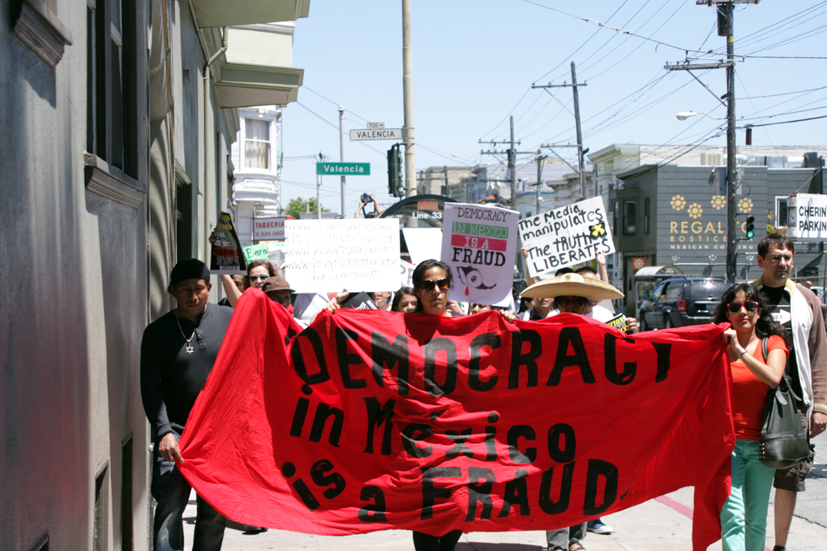 Beautifully balanced coverage of a tipicaly active and sunny day in the Mission. Mexico needs our attention and support. The fraudulent election there results is not unlike the fraudulent and illegal imposition of W. Bush in his “win” over Gore. Mexico is not a foreign country, its our neighbor and deserves our support!