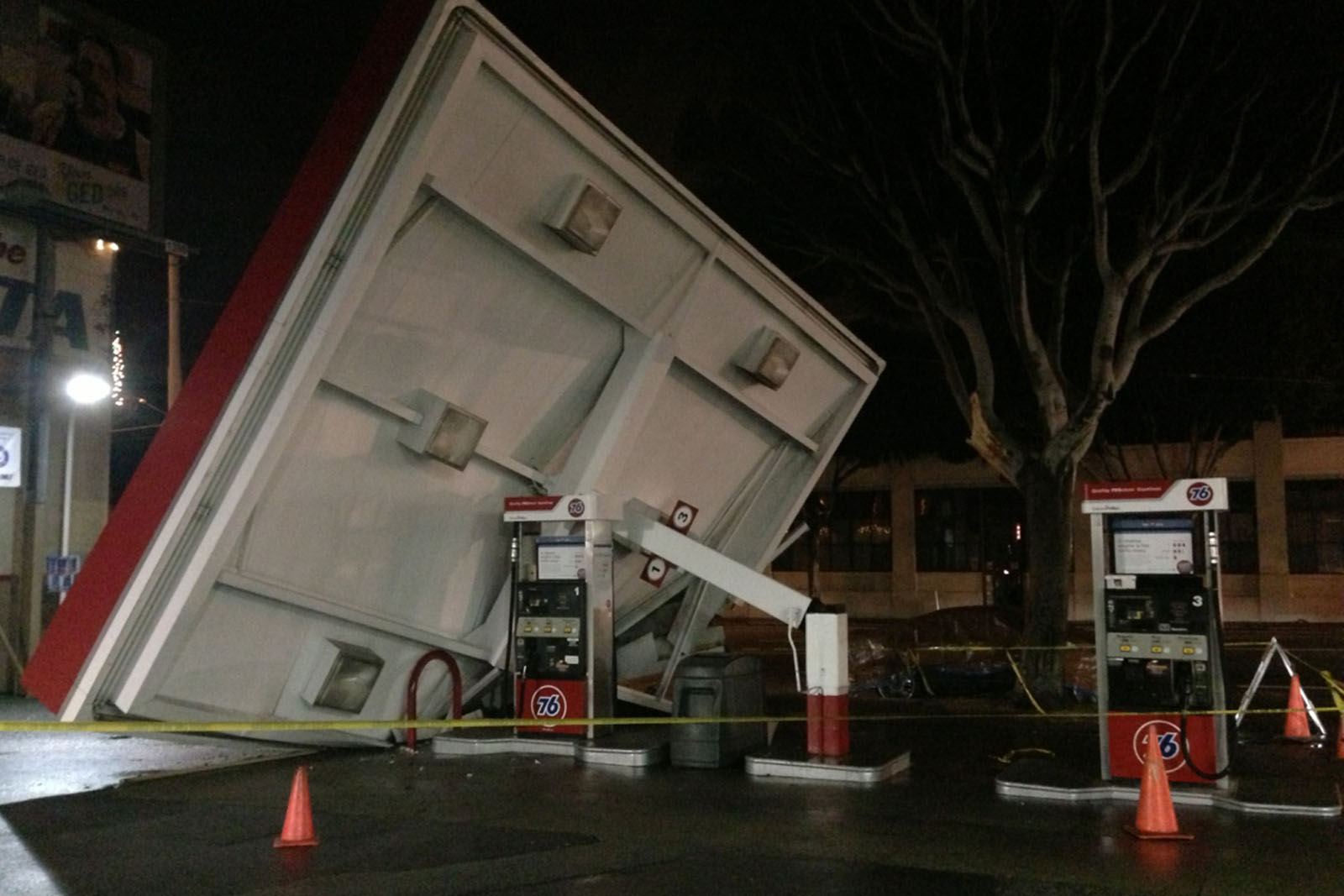 An overhang at the 76 gas station at 17th St. and Potrero Ave. collapsed Saturday afternoon.