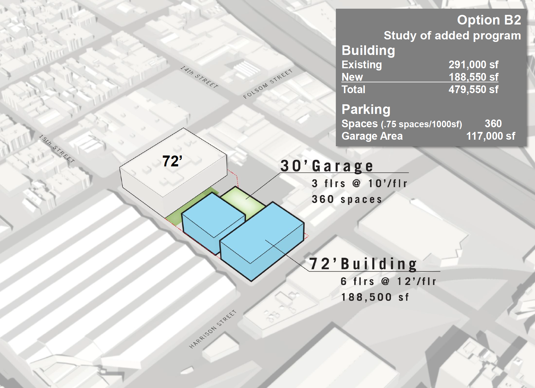 All of UCSF’s proposals for developing the 15th and Folsom site include a parking structure that would have at least 87 more parking spaces than the current lot.