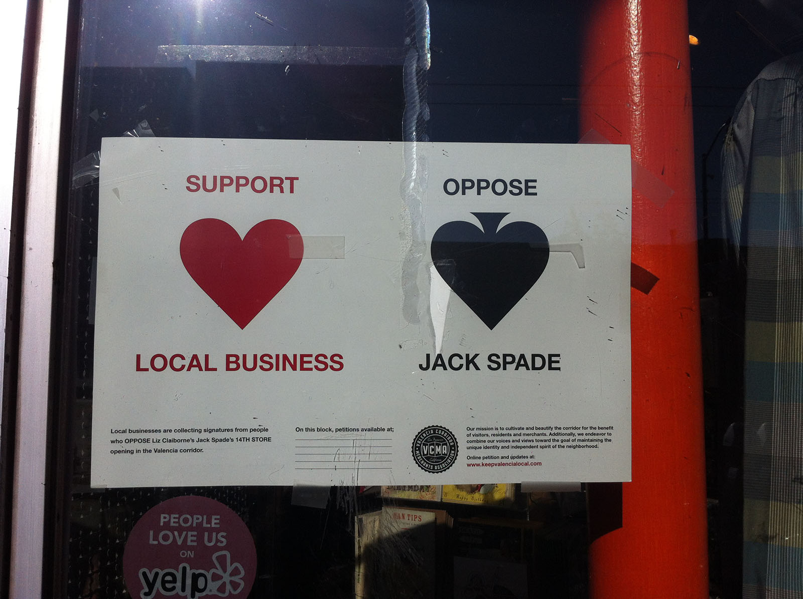Most businesses are opposing Jack Spade coming to the neighborhood.