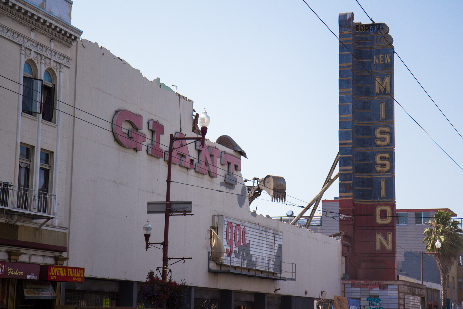 We are losing the Giant Value’s sign, but the New Mission Theater remains. Check a brief history on Mission movie theaters, including this one, here.