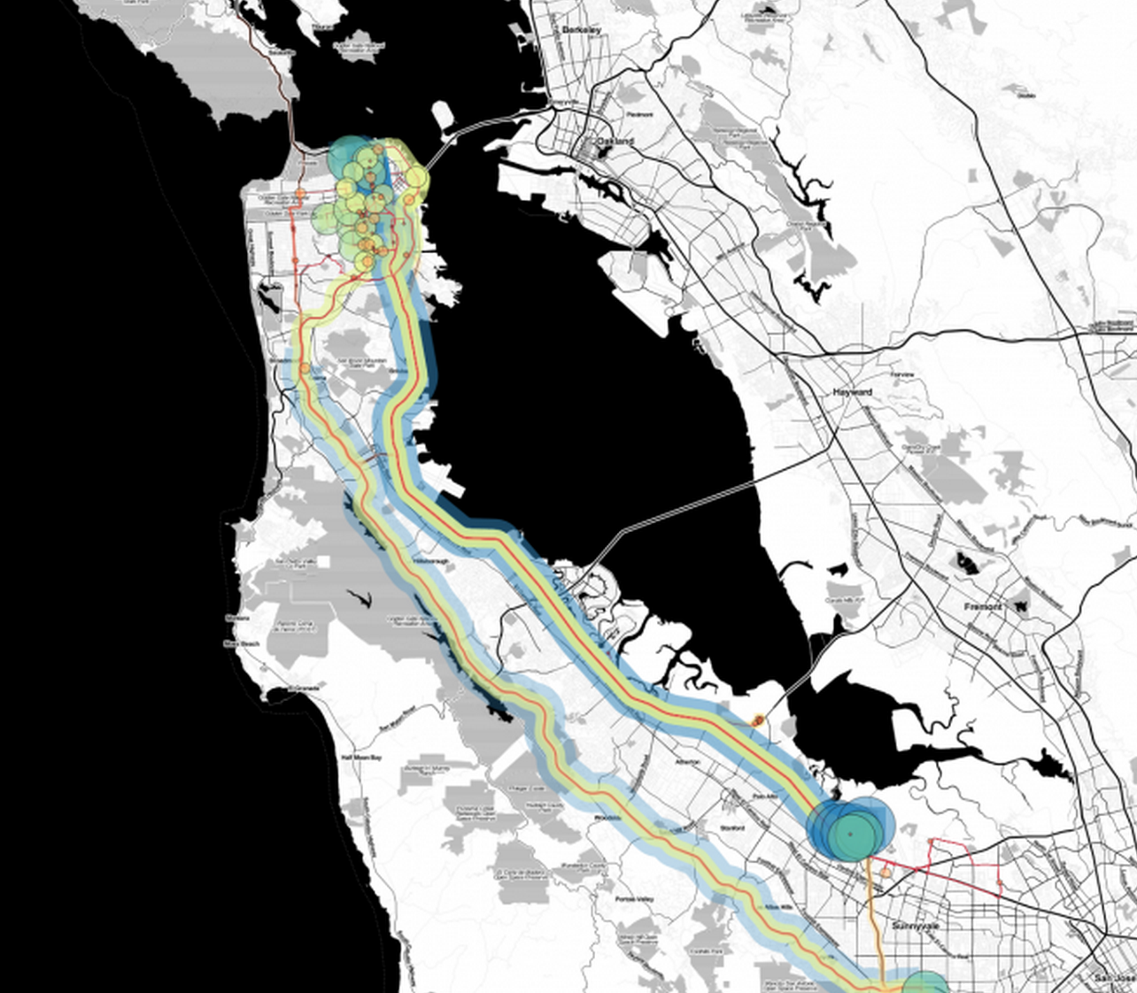 After studying the data, Rodenbeck concludes that the corporate shuttles aren’t just a sign of gentrification. They’re physically restructuring “an entire system of urban inter-relationships.”