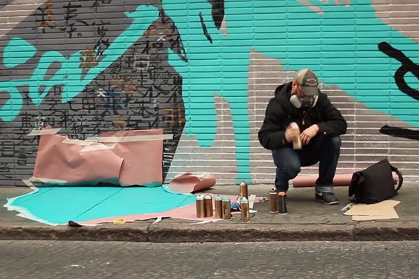 What a conceited jerk! And so brave he covers his face! Besides his graffiti being ugly, he is vandalizing private property. He needs to get a real job. In the meantime, the book needs to e thrown at him; he’s breaking the law. Real nice he’s vandalizing Chinatown alleys – Not!