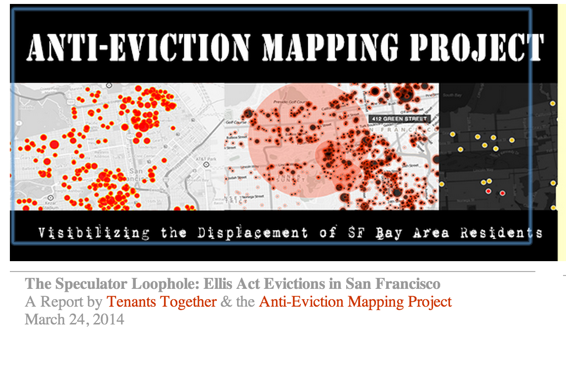 The Anti-Eviction Mapping Project released a new study that documents how the Ellis Act is used primarily by new buyers to evict tenants rather than its original intent of giving longterm owners a way to exit the rental market.