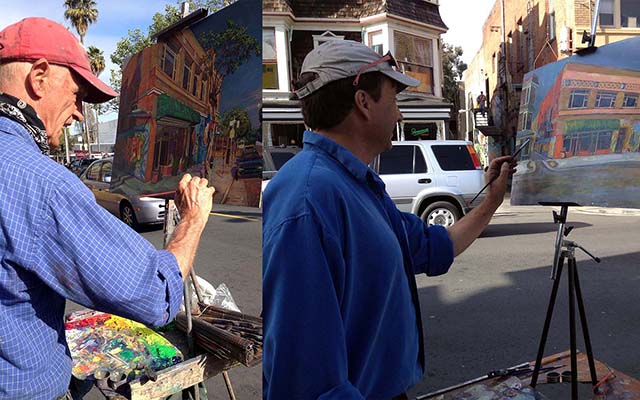 Anthony Holdsworth, left, painting on 24th Street last week with one of his students on the right.