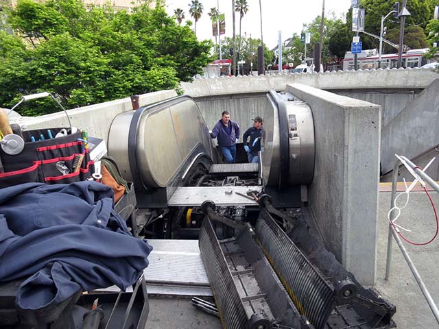 The two repair men were not happy and one said they were still trying to figure out the problem. (The escalator has been out at least since Saturday.) Would it be working again today? Nope.