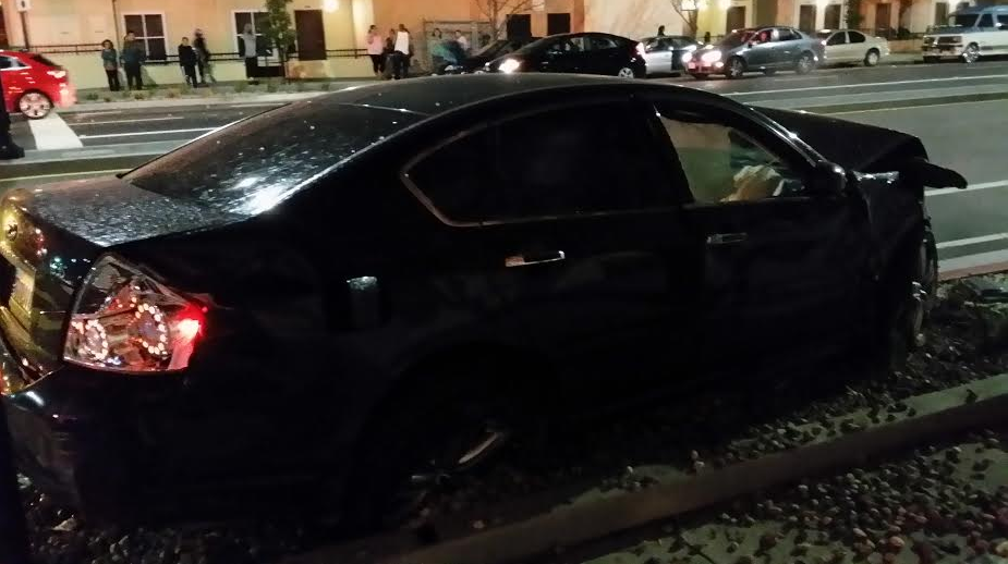 The car that was hit, a Toyota Corolla, hit the wall of a nearby building before coming to a rest. The impact woke up the residents of the building. Witnesses said the man in the car was unconscious and looked to be in bad shape.