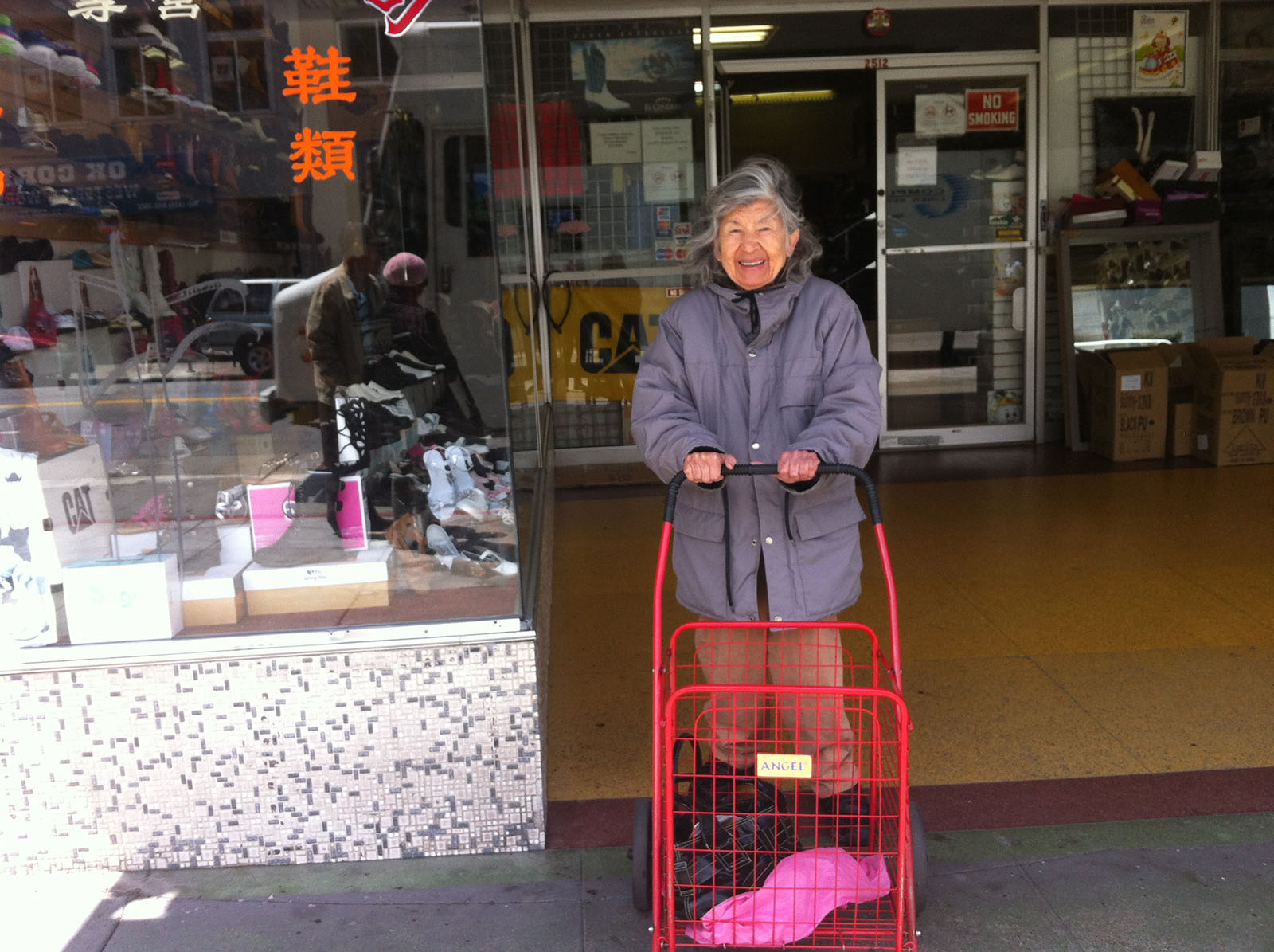On my way today as I was walking up 21st, I ran into Ana García, who was at the corner of Capp Street waiting for someone who would have enough patience to stop and walk with her to Mission and 21st. “I like to walk, but today it’s just so windy,”she said, holding on to my arm with one hand and to her empty cart with the other hand.