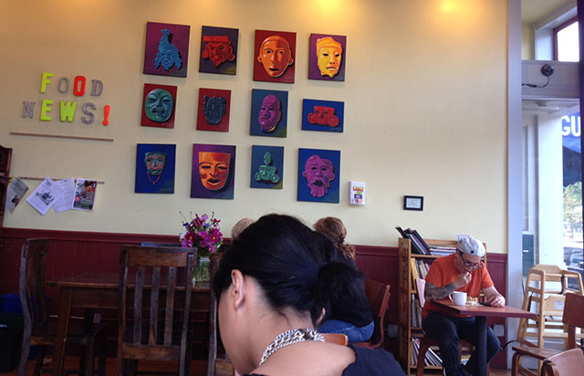 There’s a nice Mission mix of old-timers, hipsters, students and techies. The smells are always inviting and the pies, walnut scones, salads and now, stews in the evening, all look delectable.