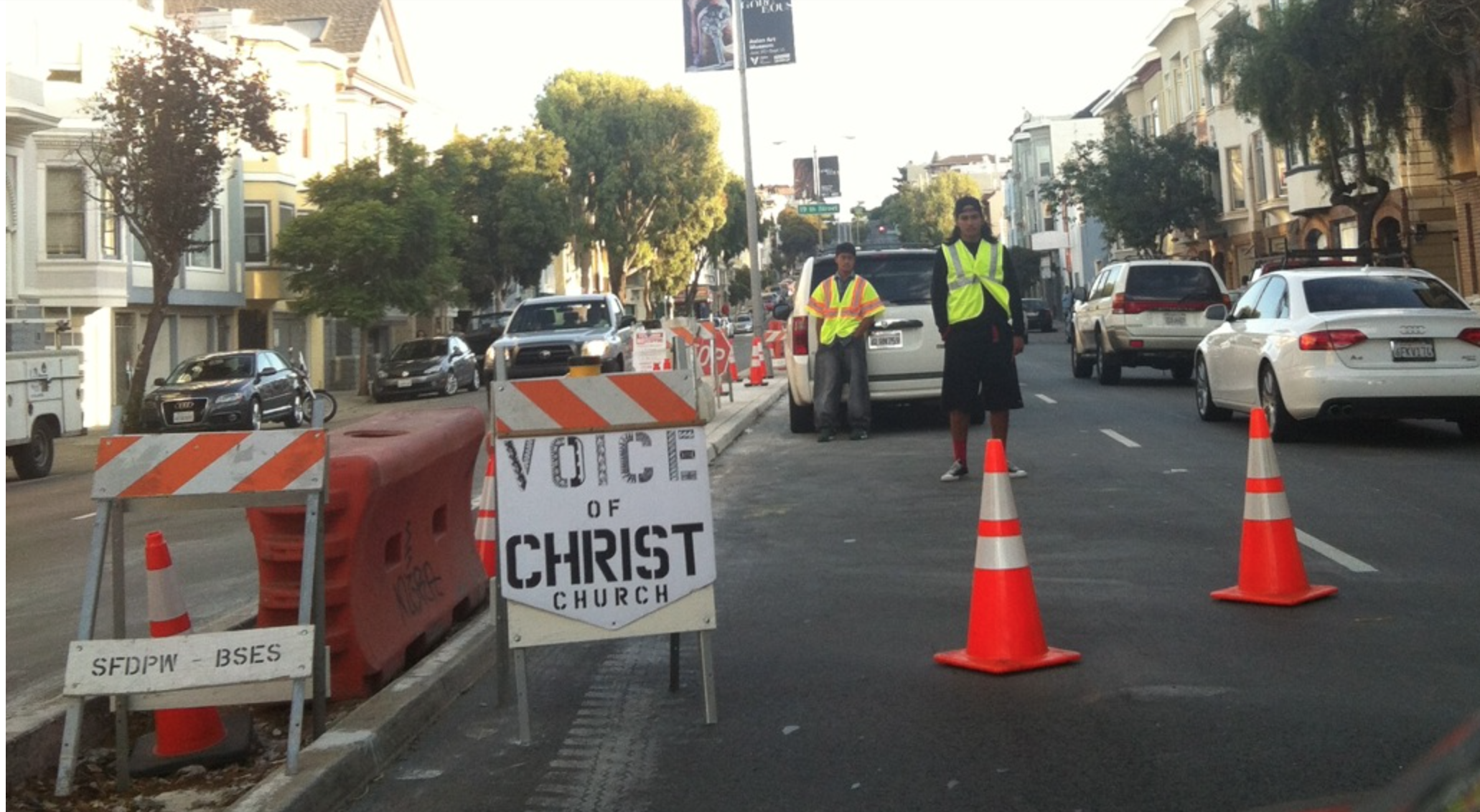 This neighborhood is NAMED the Mission District, not the Secular Humanism District. Ditto for this blog. I’m an atheist and I am learning to accept that neighborhoods will change over time and I totally support the city’s car diet, but these comments remind just how much San Francisco has changed so that community is less important than individual desire and lifestyle choices. There are churches of all deminations that benefit, including a synagogue. I don’t believe in God, but I still believe in and respect the important role that religious organizations can play in stable communities. One lane usually slows down traffic quite a bit, and I’m wondering if there’s really greater numbers of accidents on Sunday mornings because of the parked cars. That said, I’m all for congregants having placards and cars getting ticketed if they don’t display one.