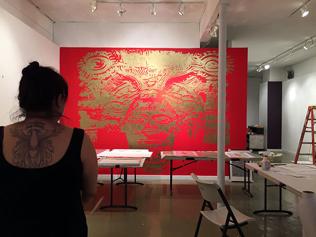 Although Rivera was tense, much had already been done. A god of the underworld, a reminder of death and darkness, filled a back wall. Since we are in the “muerto” or Day of the Dead season the god is an appropriate presence, Rivera said.