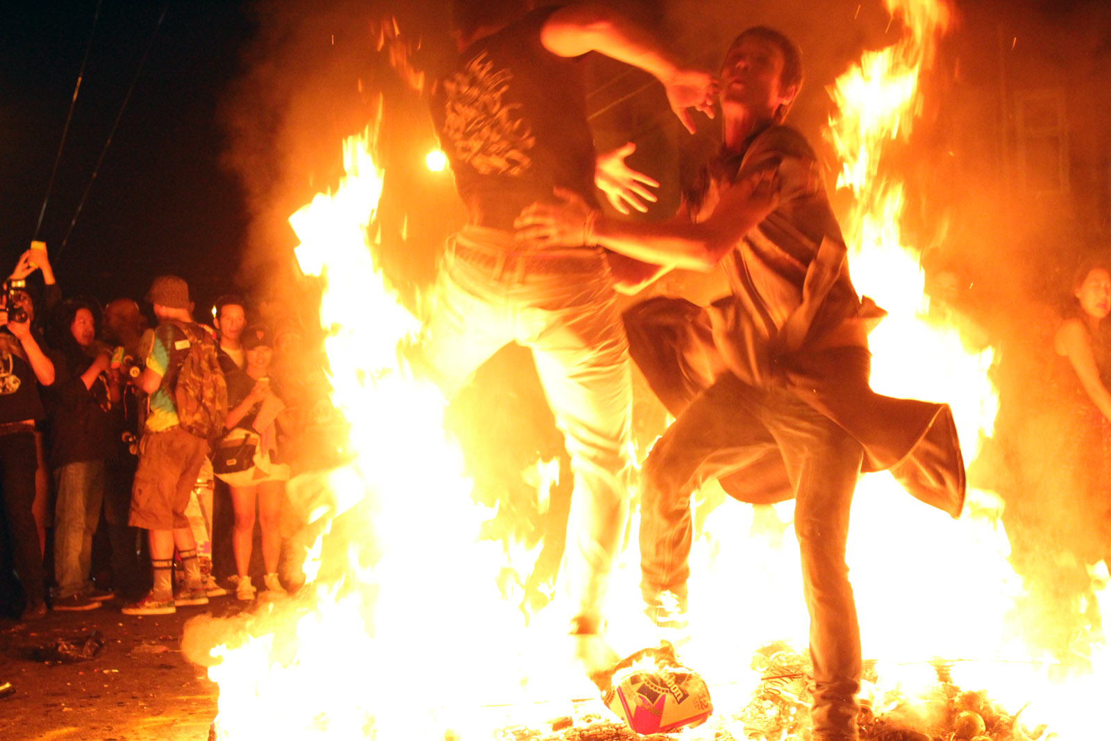 As the night progressed and the crowds along Mission Street grew, the party veered towards mayhem. A little before 9 p.m. someone near the corner of 19th and Mission set a couch on fire. It would be the site of many more fires as the night progressed.