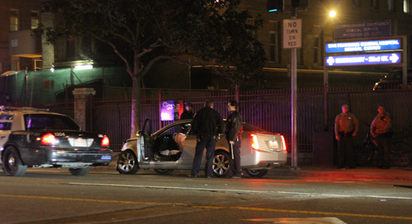 An attempt by officers to pull over a silver Cadillac that ran a a red light started on Carolina Street in Potrero Hill and quickly developed into a chase into the Mission. It ended at 8:30 p.m. Tuesday when the suspect t-boned another vehicle with a driver and one passenger in front of San Francisco General Hospital at 23rd and Potrero.