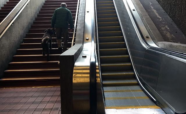 March 17, 2015 – After months of stellar service, the 24th Street escalator at the southwest entrance to BART has stopped moving – again. This out-of-service period began sometime between last night at 10 p.m. and this morning at 10 a.m.