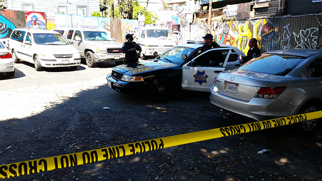 A crowd of witnesses gathered on the corner as the police worked to remove the body from where it was lying behind a parked truck. Several witnesses said the victim was a Salvadoran immigrant who had been in the Mission for many years and lived on the streets.