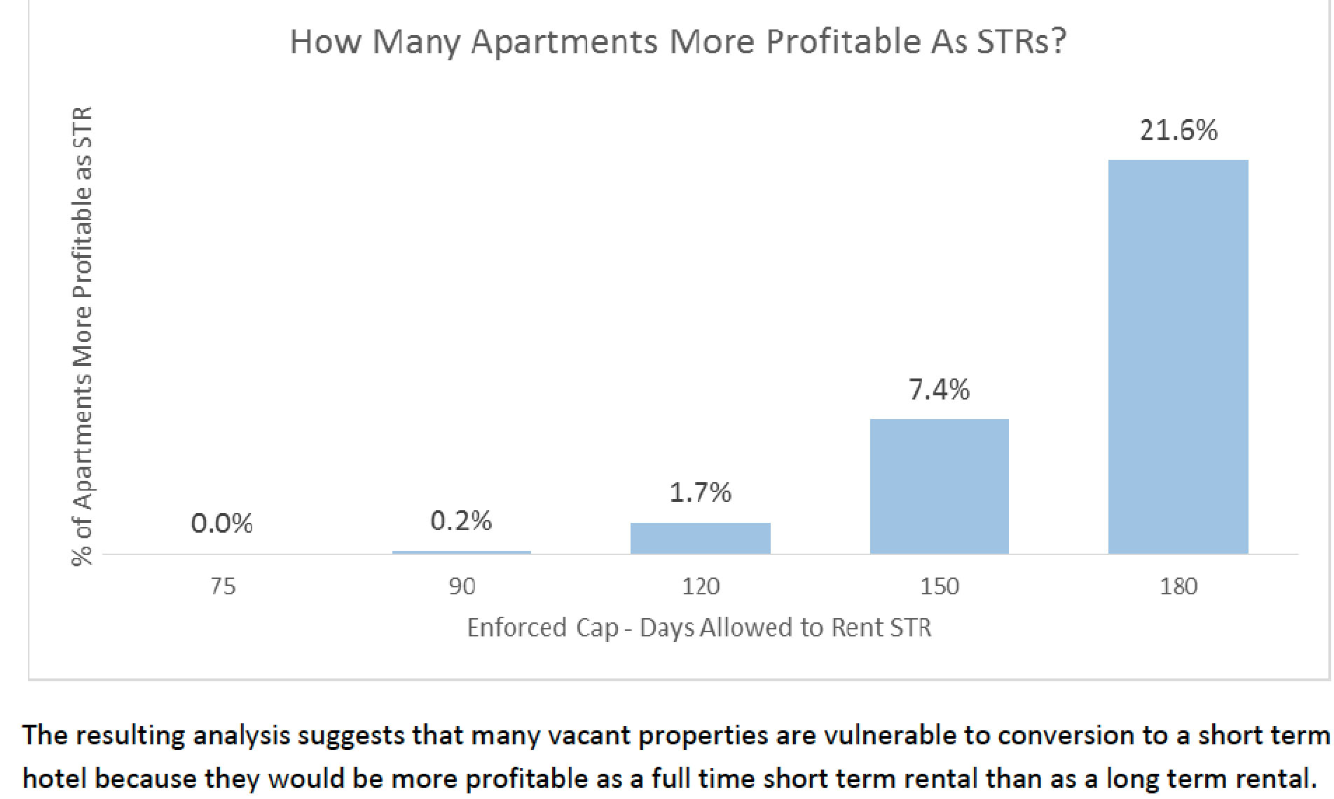 As it is now, any cap is “completely unenforceable ” and an unregulated market will “lead to the loss of more long term rentals. ” That outcome, the city’s reports show, ends up hurting everyone and negating the benefits to host, city’s tax coffers and the local economy.