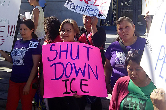 At a rally before the Board of Supervisors met, Yadira Sanchez, a 24-year-old San Francisco resident whose grandfather came very close to being deported after being mistaken for another man by the same name, called for the rejection of the program.
