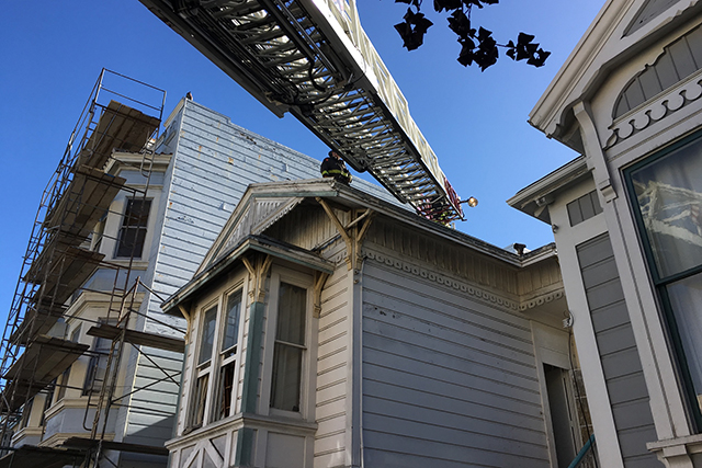 Firefighters arrived at 3539 24th Street between Guerrero Street and San Jose Avenue shortly after 11 a.m. this morning to battle an electrical fire in the attic of a three-unit residential building. The one-alarm fire was quickly contained, though it left water damage and some fire damage to the top unit, said Assistant Chief Dave Franklin.