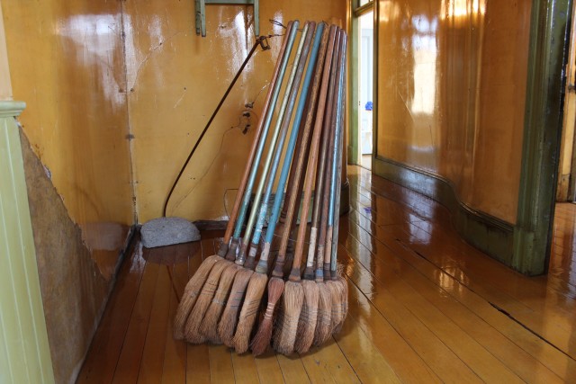 Ireland covered almost the entire interior with polyurethane, a transparent coating meant to preserve the walls in their age and imperfection — cracks, discolorations, and all. The team went through several different coatings before choosing one that maintained the glossy sheen of the polyurethane, and also applied it lightly enough so that Ireland’s original brush strokes were not lost.