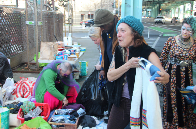 “That pisses me off,” said Mamma Donna, a homeless woman at Tuesday’s clothing drive. She said the city should focus on providing “trash cans and bathrooms” if they want the area cleaned up, and said she becomes furious when people “tell us we can’t have shelter.”