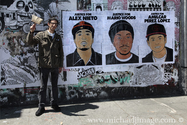 He was hanging his work on the “free speech” wall on Valencia Street. Great to meet the man who created these well known artworks. Here is a piece from KALW on the Oakland-based artist.
