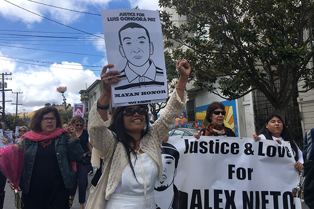 Gongora’s extended family joined Elvira and Refugio Nieto, the parents of 2014 police shooting victim Alex Nieto, and neighbors of Amilcar Perez Lopez, a 20-year-old Guatemalan immigrant who lived and was shot by officers on Folsom Street on Feb. 26th, 2015.