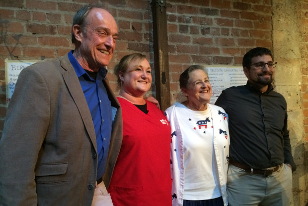 Hene Kelly, caucus chair, said, “What this did for me is tell me there are real people out there working for Bernie.” Speakers had talked about registering voters, knocking on doors, and traveling to other states. “That excites me,” Kelly said, “and it takes a hell of a lot to excite me.”